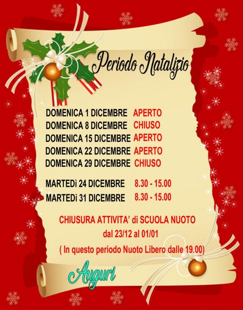CHIUSURE 25-26 e 29 DICEMBRE, 1 e 6 GENNAIO.